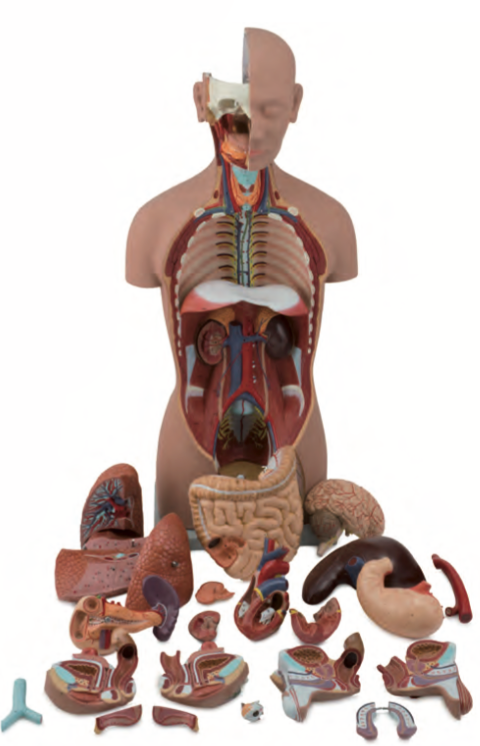 ■ 功能:85CM自然大人體兩性軀干,共25部件,男女生殖器可互換,詳細(xì)的再現(xiàn)內(nèi)部器官細(xì)節(jié)構(gòu)造,人體各大系統(tǒng)結(jié)構(gòu)。并且在每一個(gè)器官或結(jié)構(gòu)部位都標(biāo)示了數(shù)字,結(jié)合說明書有利于精確地認(rèn)識人體解剖學(xué)的器官結(jié)構(gòu),適于教學(xué)研究的目的,模型部件包括:大小腦(1),眼球(1),左右肺(4),食管(1),氣管(1),肝和膽囊(1),胃(1),心臟(2),胰脾十二指腸(1),腎蓋(1),男性內(nèi)外生殖器(4),女性內(nèi)外生殖器(4),大腸小腸帶盲腸蓋(2),軀殼(1),安放于塑料座上。