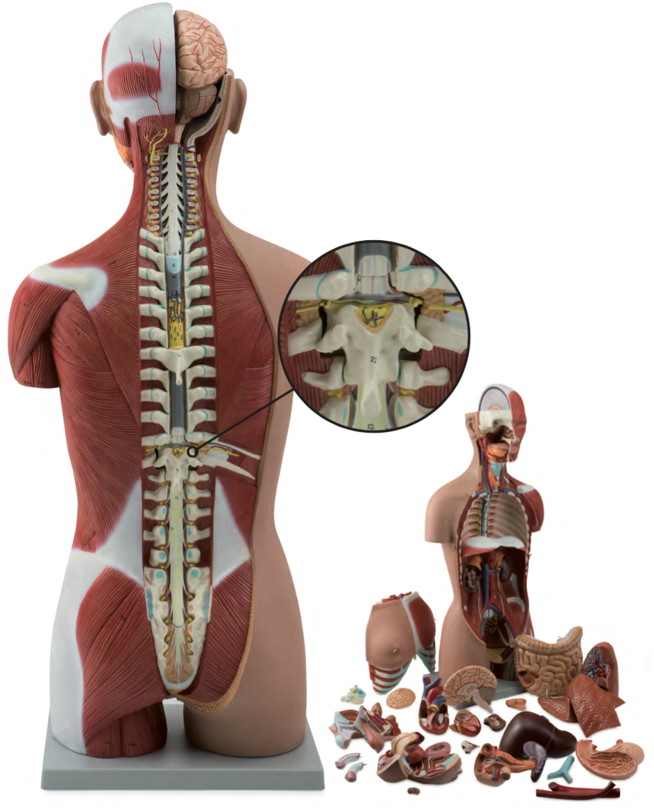 ■ 功能:85CM自然大人體兩性開背豪華肌肉軀干,共29部件,男女生殖器可互換,詳細的再現內部器官細節構造和人體各大系統結構以及人體軀干及背部肌肉的基本結構,并且在每一個器官或結構部位都標示了數字,結合說明書有利于精確地認識人體解剖學的器官結構,適于教學研究的目的,模型部件包括:大小腦(1),眼球(1),左右肺(4),食管(1),氣管(1),肝和膽囊(1),胃(2),心臟(2),胰脾十二指腸(1),腎蓋(1),男性內外生殖器(4),女性內外生殖器(4),大腸小腸帶盲腸蓋(2),軀殼(1),胸椎(1),胸蓋(帶肋骨)帶胸腺(2),安放于塑料座上。