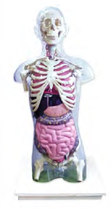 ■ 功能:顯示顱骨與腦,軀干骨與胸、腹、盆腔內臟器官毗鄰的位置和關系,可以讓學生通過透明體表了解胸、腹腔器官的形態、位置關系和毗鄰,了解胸、腹腔器官與骨骼的位置關系和毗鄰,了解人體內臟器官的體表定位,了解人體正中線、鎖骨中線、腋前線、腋中線、腋后線、胸骨旁線所涉及的內臟器官定位,了解腹部體表分部所涉及的內臟器官定位等;安放于塑料座上。