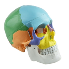 ■ 功能:模型上頜骨和下頜用彈簧連接起來,可以自由活動;顯示人體正常大小顱骨正面、側面、上面、底面立體結構,顱蓋和顱底可分開,用不同顏色區分不同顱骨的分界線和組成;