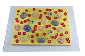 ■ 功能:此模型為血細胞浮雕模型,顯示血液內紅細胞,不同種的白細胞和血小板等組織形態;