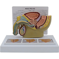 ■ 功能:縮小的男性骨盆矢狀切面居中。底部顯示三個(gè)三維橫截面前列腺。切片代表良性前列腺增生(良性前列腺增生/前列腺肥大)的階段(正常、中度、晚期);
