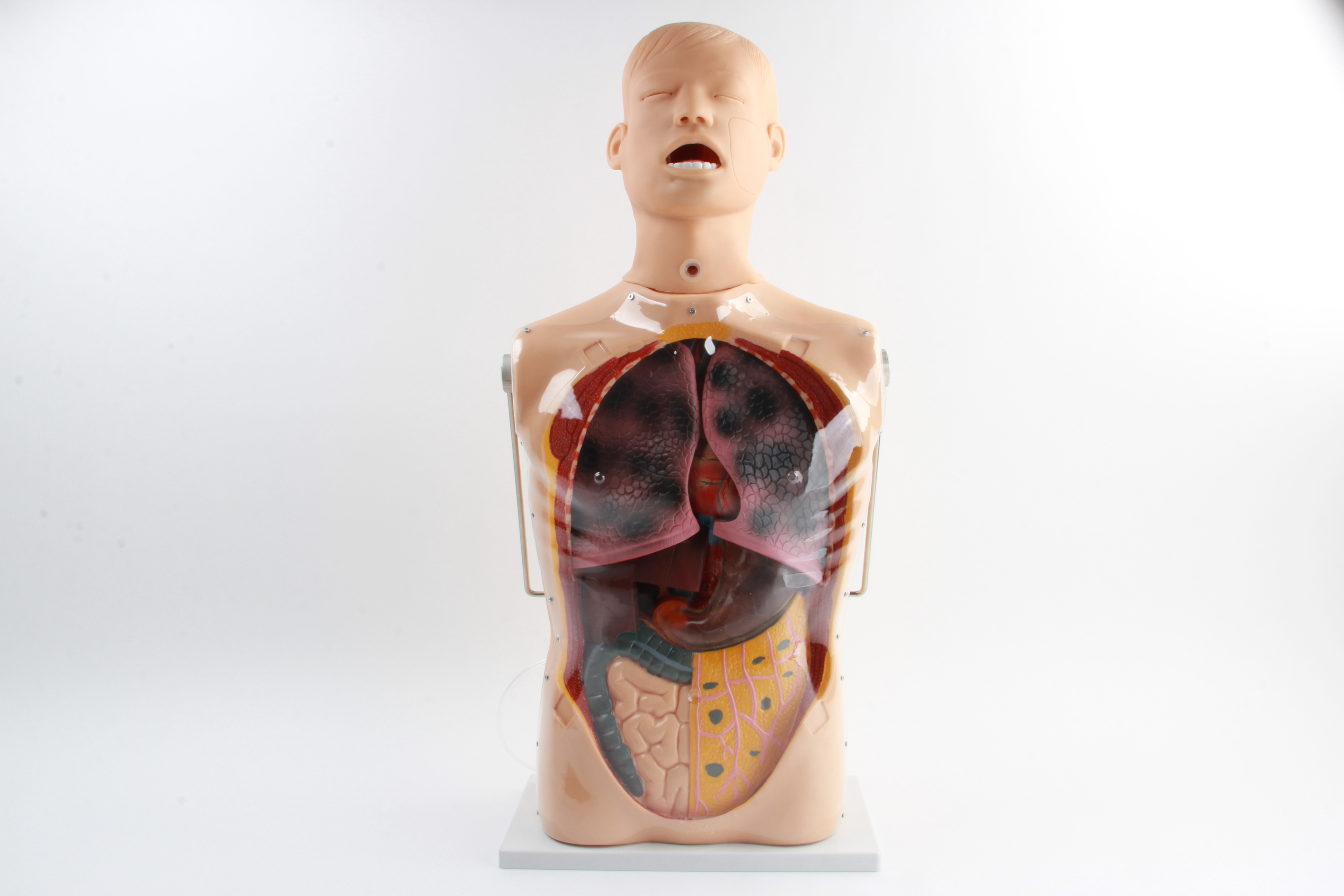 ■透明胸壁,暴露胸腔內臟器,如胃和肺臟,檢驗操作是否正確;